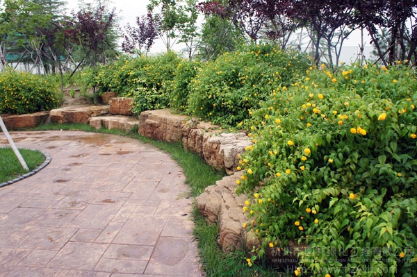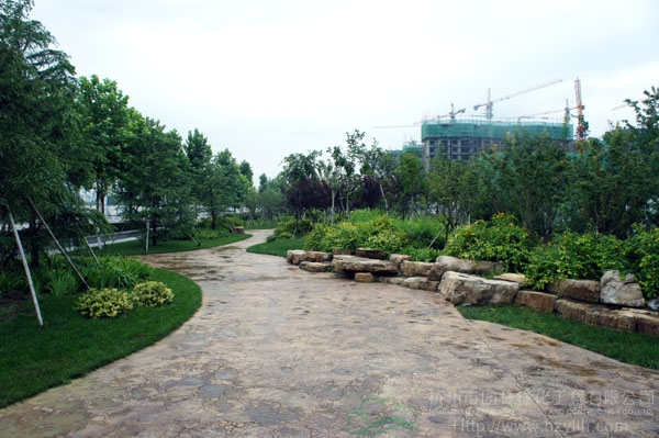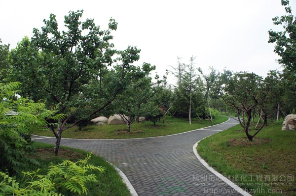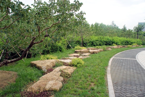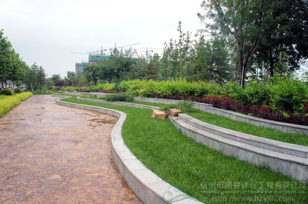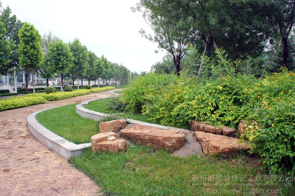 山東壽光市東環(huán)路東側(cè)綠化改造工程(圣城街-北環(huán)路)面積9萬平方米,施工范圍為機動車道與非機動車道之間2.5米的隔離綠化帶和30多米寬的路側(cè)綠化帶,施工內(nèi)容包括土方地形整理、綠化種植、園路鋪裝、景石擺放、景觀小品營建等。2009年9月開工,2010年7月竣工。經(jīng)過2年的精心養(yǎng)護,如今,這里樹木蔥郁,花草繁茂,一路走來,隨著多種風格的園路在腳下延伸,風景也在眼前不斷變化。