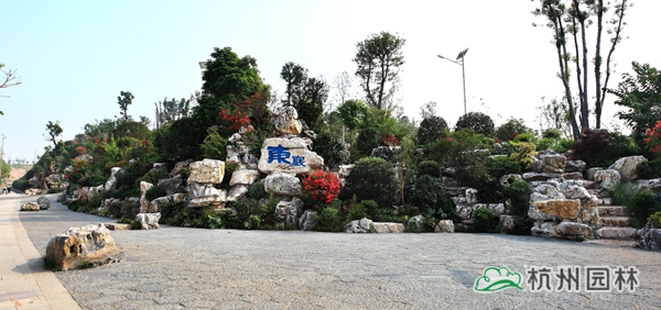 該工程位于瀘州城東長江東岸,面積近七公頃。其中,“東巖夜月”是瀘州老八景之一,景觀資源豐富。工程設(shè)計范圍為國窖大橋東岸橋頭節(jié)點,總面積近5萬平方米。設(shè)計理念以生態(tài)園林為出發(fā)點,以恢復(fù)東巖崢嶸峭壁,修復(fù)道側(cè)山體綠化,保護、改善、美化、提升區(qū)域生態(tài)環(huán)境為目標(biāo),本著以人為本、重視公眾參與的原則,充分利用現(xiàn)有的豐富自然資源及人文環(huán)境,規(guī)劃出一個既能滿足市民休閑娛樂,又能體現(xiàn)東巖公園特色的景觀場所。