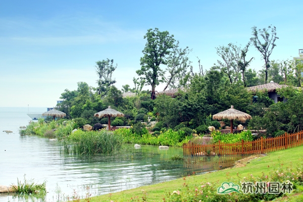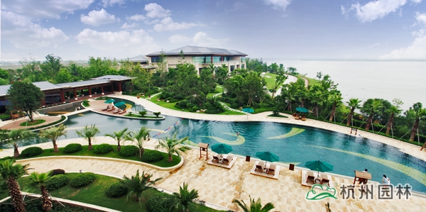 該工程位于江蘇吳江松陵鎮(zhèn)濱湖路三船河大橋附近,內(nèi)容包括綠化種植、硬質(zhì)鋪裝、園路施工、景觀小品工程、樁基工程、景觀照明系統(tǒng)等。在植物配置上,將中國園林的自然式手法與英國園林的自然式風(fēng)格相結(jié)合,營造出亦古亦今、中西混搭,整體恢宏大氣、局部婉約精致的高端酒店景觀。該工程榮獲“2014年度中國優(yōu)秀園林綠化工程大金獎”。