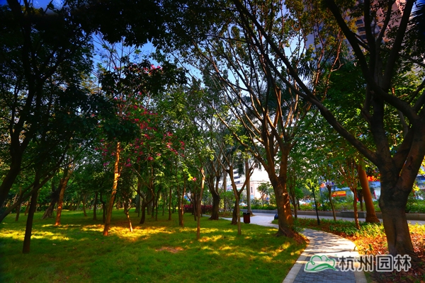 深圳市桂花路都市公園帶工程是一個改造提升工程,長約1.7公里,綠化恢復總面積約10萬平方米,施工范圍包括道路中央分車綠帶、道路分車綠帶及路旁綠地,施工內容包括種植土回填、綠化種植、綠化灌溉等工程。自2012年5月開工,2013年6月竣工,由杭州市園林綠化股份有限公司承建。榮獲“2014年度浙江省優(yōu)秀園林綠化工程金獎”。
