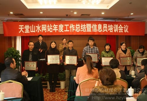 會(huì)議的重要環(huán)節(jié)之一為表彰先進(jìn)。徐協(xié)平宣讀獲獎(jiǎng)文件之后,周定炎、徐協(xié)平、繆梓倫為獲得2012年度“天堂山水”門(mén)戶網(wǎng)站的十佳單位、先進(jìn)個(gè)人、優(yōu)秀子網(wǎng)站進(jìn)行了頒獎(jiǎng)。其中,杭州市園林綠化工程有限公司網(wǎng)站被評(píng)為“優(yōu)秀子網(wǎng)站”,于會(huì)蓮?fù)颈辉u(píng)為信息宣傳工作“先進(jìn)個(gè)人”。