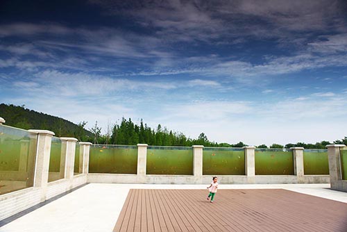 天師廣場:和天師嶺、創(chuàng)教路、鶴鳴臺等景點(diǎn)一起,集中展示張道陵天師歷經(jīng)得道、修煉、斗法、立教、升天,羽化成仙的過程,再現(xiàn)張?zhí)鞄煹男薜乐啊V場呈半圓形,設(shè)有特色鋪裝、臺階花壇、觀景錯(cuò)層平臺等硬性設(shè)施,觀景平臺與水上世界自然融為一體,伴著徐徐微風(fēng),云龍湖的美景盡收眼底。