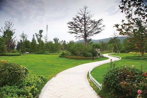 工程在施工過程中,對原有地形和保留下來的大量古樹、名貴樹木進(jìn)行了充分運(yùn)用。本著以人為本、生態(tài)優(yōu)先的原則,因地制宜、因材施用,建成了許多不同風(fēng)格的景點(diǎn),營造出全新的景觀效果。