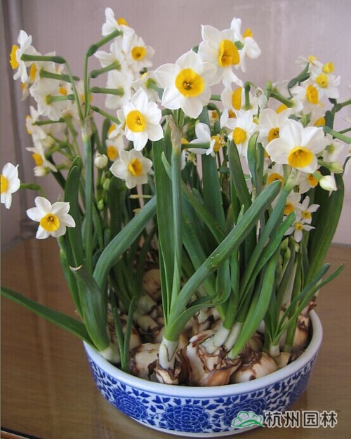 水仙:水仙是冬季常見的花卉之一,通常種植的水仙是指中國水仙,其姿態(tài)玲瓏可人,清香撲鼻,在寒冬臘月可開花;而洋水仙一般在春季開花,色彩艷麗,形態(tài)壯美,但大多缺乏香味,兩者各具特色。但是,無論中國水仙還是洋水仙,種球的優(yōu)劣決定著花的質(zhì)量,因此,在選購種球時要挑個大、硬實、側(cè)芽少的種球。中國水仙有土培和水培兩種種植方法,水培法即將催芽處理后的水仙種球直立放入淺盆中,加水淹沒鱗莖三分之一為宜,盆中以玻璃球、鵝卵石等固定。洋水仙不宜用作水培且喜冷涼環(huán)境,過于溫暖會導(dǎo)致葉片徒長,較喜水,花期時適量增加水分可延長花期。