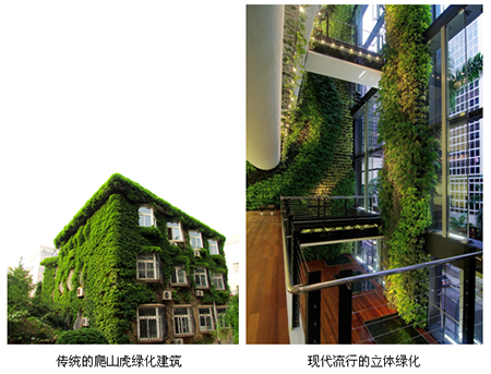 立體綠化的主要形式為立體綠化墻,也稱植物墻或綠墻,是近年來興起于法國的一項用于墻面垂直綠化的新技術(shù)。過去用于垂直綠化的植物只有大家熟悉的爬山虎、紫藤等,但是這些植物缺乏常綠、觀花、觀果的觀賞效應(yīng),而且還要引導(dǎo)植物攀爬墻面,搭棚架、立柱,幾年以后才成氣候,比較麻煩。而如今的立體綠化墻是一個小型生態(tài)系統(tǒng),它可以根據(jù)客戶需要,結(jié)合氣候、溫度、濕度、色彩等綜合條件,選配四季長綠或色彩豐富的植物,隨時在人們想要的地方構(gòu)建出一個貼近自然又超脫自然的生活環(huán)境。當在屋頂、墻面等覆蓋了適當?shù)闹脖缓螅罅康臒釟夂妥贤饩€都會被植物抵擋,這層植物墻能夠使其表層溫度降低15°C左右,夏天基本可以不需要依賴空調(diào)。而且植物墻能消除墻面對陽光的反射,使走在大街上的人們不受陽光干擾,感受到?jīng)鏊耐瑫r也避免眼睛被強光照射。到了冬天,植物墻又具有保溫的功能,這種方式非常低碳節(jié)能,并且更健康。