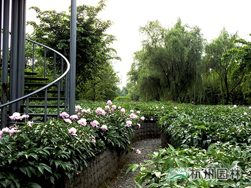 芍藥迷宮,下部采用疏松透氣的介質(zhì)作為種植筐,為芍藥提供良好的生長環(huán)境。