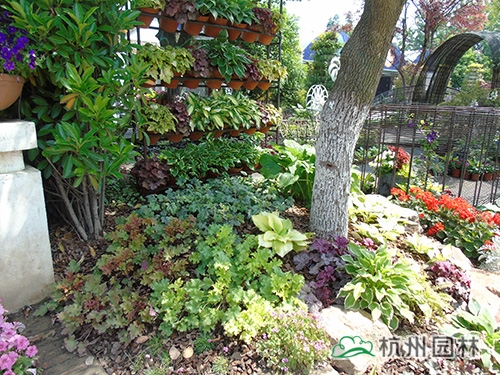 多彩的礬根與玉簪搭配,營(yíng)造出色彩明快的林下地被景觀