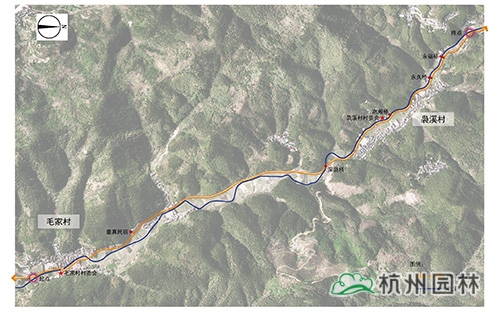 本次設(shè)計范圍為Y503鄉(xiāng)道(毛家村--裊溪村段)沿線的景觀改造提升,長度約為3公里。改造提升內(nèi)容主要為道路沿線兩側(cè)的建筑立面整治、荒地覆綠、花壇整治、護坡?lián)鯄κ崂砀隆⑿略鱿吰脚_、老橋修復(fù)、廣場整治等。