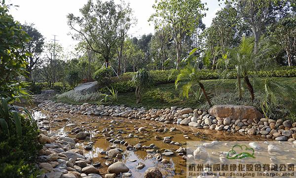 “項(xiàng)目將海綿城市理念融入公園建設(shè),園路鋪裝采用透水混凝土,下雨時(shí)雨水可快速滲透,路面不積水;旱溪景觀則在下雨時(shí)蓄水,雨水可用于植物的日常澆灌,干旱時(shí),鋪滿(mǎn)鵝卵石的水底又與周邊豐富的植物營(yíng)造出另一種園林意境。”隨著葉偉華的介紹,項(xiàng)目建設(shè)中許多隱藏的細(xì)節(jié)不斷展現(xiàn),生態(tài)造園的理念進(jìn)一步深入人心。