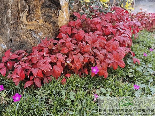 項(xiàng)目中應(yīng)用了許多景石,為了避免出現(xiàn)視覺(jué)的疲憊,每塊景石的形態(tài)、大小、植物配置都各有千秋。在一些入口和節(jié)點(diǎn)處,通過(guò)景石與色葉植物、開(kāi)花植物、球類(lèi)植物的有機(jī)搭配,營(yíng)造出一個(gè)個(gè)意趣盎然的花境景觀。