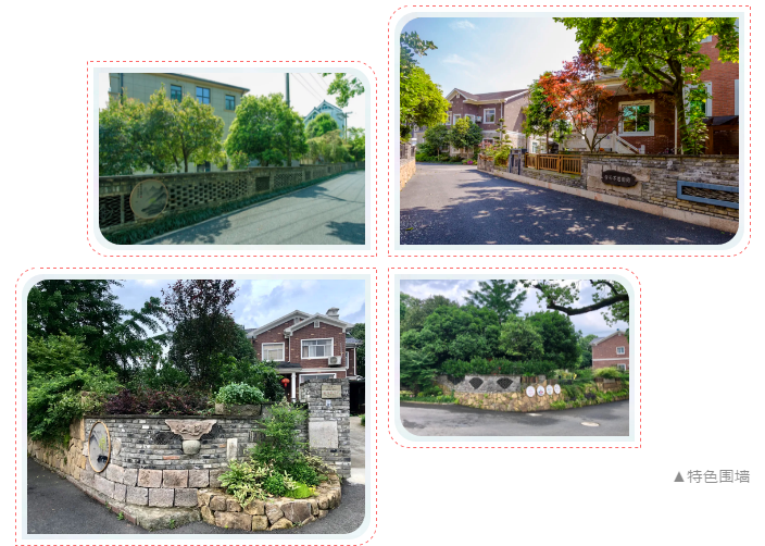 在進行景墻施工時,根據(jù)每家的房屋建筑特色選擇了不同的材料和植物配置手法。比如,建筑外立面為紅色的,景墻以紅色磚為主,搭配月季、佛甲草等植物;建筑外立面為灰色的,景墻以淺黃色磚為主,結合小木樁或仿竹籬笆,搭配石竹、美女櫻等植物;建筑外立面有大理石點綴的,景墻以桐廬石為主,輔以裝飾過的輪胎,點綴佛甲草、常春藤等植物。不同的處理手法,使得家家戶戶的景墻既有連續(xù)性,又有各自的風格。