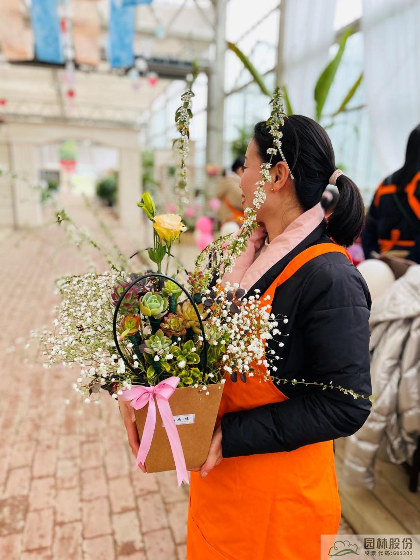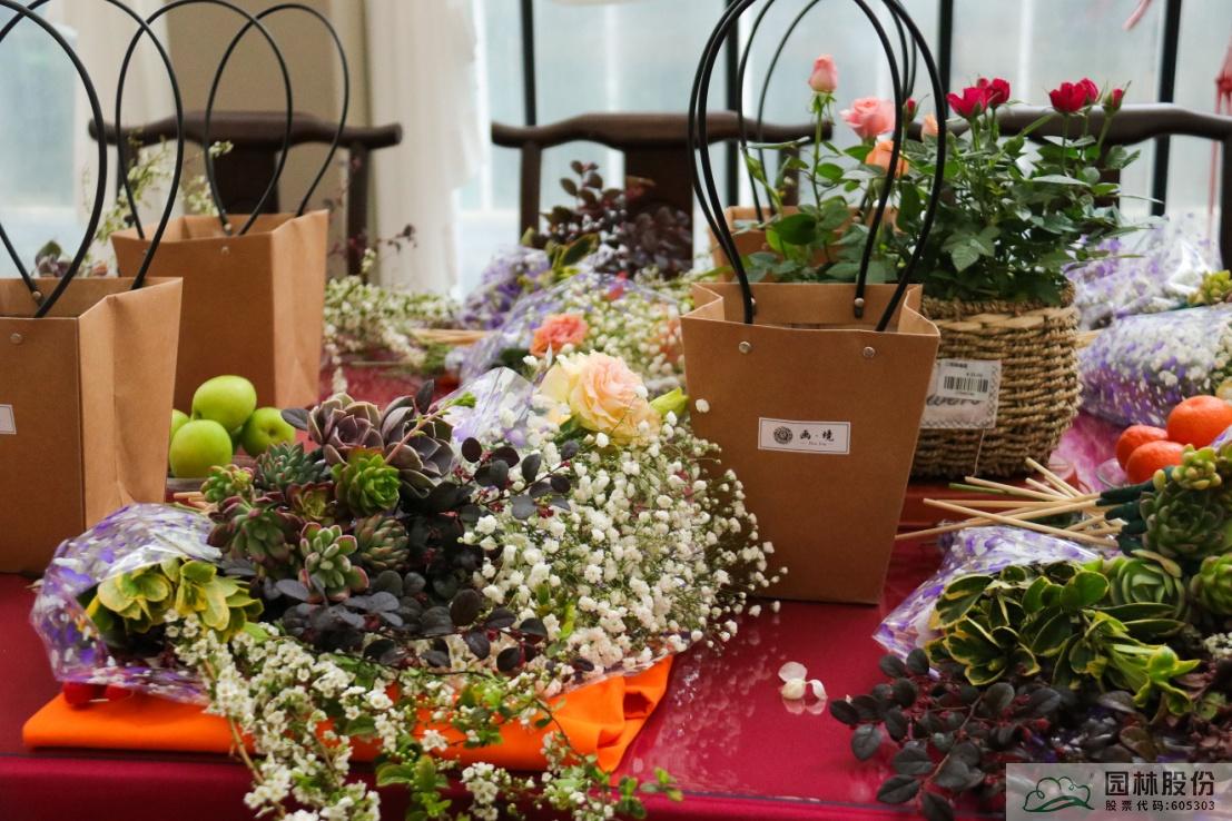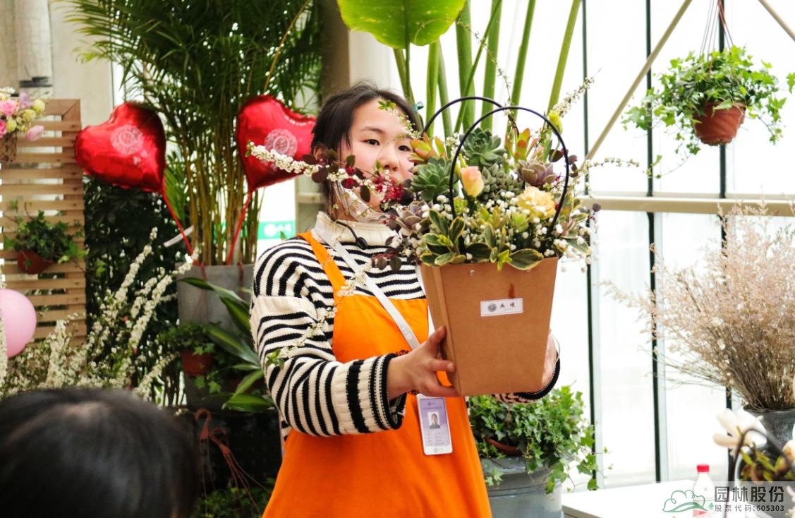 這些花材會像變魔術(shù)一樣組合成一盆盆精美的手拎禮品袋鮮花,如花藝師手上演示的這一盆,是不是很期待呢?