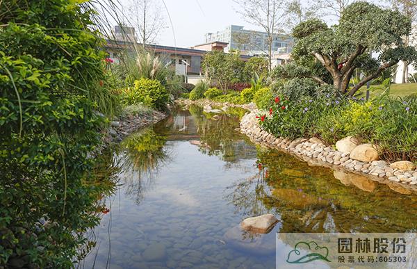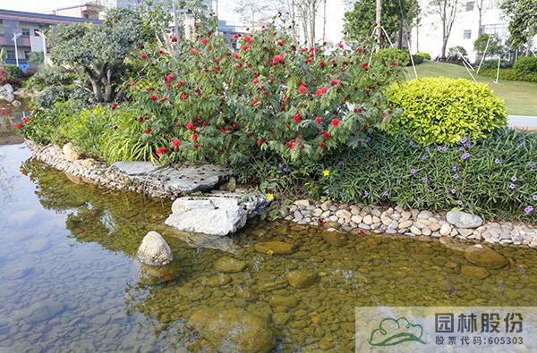 融入海綿城市理念打造的旱溪景觀,用鵝卵石鋪裝,點綴景石,岸邊種植造型水蠟、楊梅、蘆葦、蒲草、三角梅、黃金葉、黃金榕、朱蕉、扶桑花、變?nèi)~木、紅千層等當?shù)剜l(xiāng)土植物,打造生態(tài)環(huán)保的地域特色景觀風(fēng)貌。