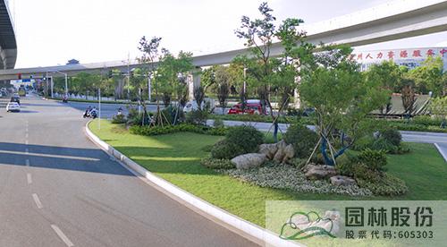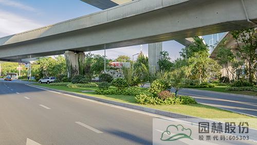 項(xiàng)目綠化施工主要包括道路分車帶、道路兩側(cè)帶狀綠地、節(jié)點(diǎn)綠地、高架橋垂直綠化等區(qū)塊。每個區(qū)塊根據(jù)其功能與特色,通過不同植物配置,營造豐富景觀。