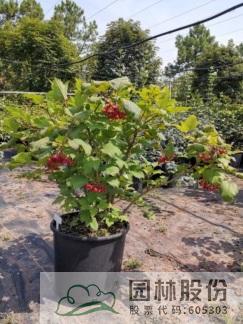 忍冬科莢蒾屬,落葉灌木,高可達(dá)4米。葉掌狀,通常三裂,秋季葉色轉(zhuǎn)紅,特別艷麗。聚傘花序白色,不孕花末期會呈現(xiàn)粉色,花徑較大,花藥呈黃色,花期4-5月。果實(shí)較大,形似櫻桃,紅艷誘人,給人以強(qiáng)烈視覺沖擊力,能形成園林觀賞的視覺焦點(diǎn)。觀果期長,可達(dá)4個月之久。適應(yīng)性強(qiáng),通常可自然成形。一年施肥3次,早春萌芽前,花后及秋季。適合工程應(yīng)用與庭院觀賞。
