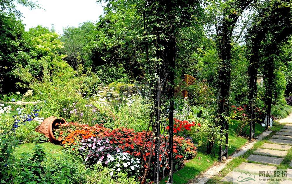 2017年,張楠主持設(shè)計(jì)與施工的“首屆中國(guó)花境競(jìng)賽”參賽作品《花溪疊翠·芳滿庭》,位于臨安青山湖花園中心室外景觀展示區(qū),在現(xiàn)有庭院布局基礎(chǔ)上,外圍景觀結(jié)合木香藤架,打造林蔭、陶罐花溪、鼠尾草等景觀系列,營(yíng)造百花齊放、芳菲無(wú)數(shù)滿庭院的意境;內(nèi)部則用櫸樹、景石、石籠擋墻及園路圍合成半開敞空間,以八仙花為主材、搭配鳶尾、石榴、落新婦、百子蓮等,打造3個(gè)花境組團(tuán),營(yíng)造人們熱愛生活、向往美好的鄉(xiāng)村私密花園美景。歷經(jīng)數(shù)月的精心施工、養(yǎng)護(hù)與專家評(píng)比,該作品從43個(gè)參賽作品中脫穎而出,榮獲“首屆中國(guó)花境競(jìng)賽金獎(jiǎng)”。