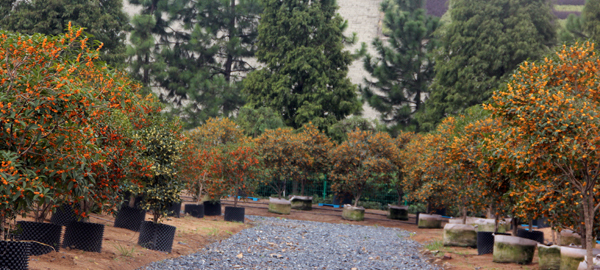 桂花是基地的主導(dǎo)苗木品種,公司依托雄厚的專業(yè)力量和研發(fā)能力,運(yùn)用現(xiàn)代化的繁育設(shè)施和技術(shù),生產(chǎn)各類桂花觀賞盆栽苗、品種容器苗、工程苗、地被容器苗和林木容器苗等,桂花研發(fā)和產(chǎn)業(yè)化程度達(dá)到國內(nèi)外領(lǐng)先水平,是“中國桂花品種繁育中心”,承擔(dān)著國內(nèi)外專家的桂花課題研究、交流考察、新品種研發(fā)任務(wù);建有中國第一個(gè)桂花品種資源庫,收集桂花品種100多個(gè),是國際上收集桂花品種最多最全的種質(zhì)資源庫之一;是國際桂花登錄組織認(rèn)可的桂花品種國際測(cè)試中心;自主研發(fā)了“杭州黃”等4個(gè)桂花新品種并通過省級(jí)審定,擁有自主知識(shí)產(chǎn)權(quán);承擔(dān)的科研項(xiàng)目“桂花品種基因(種質(zhì)資源)庫建設(shè)與優(yōu)良品種選育推廣”榮獲“2007年度杭州市科技進(jìn)步一等獎(jiǎng)”等,在桂花的科研方面,可謂是碩果累累。