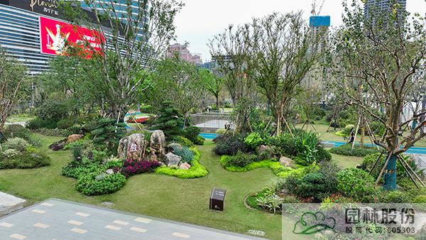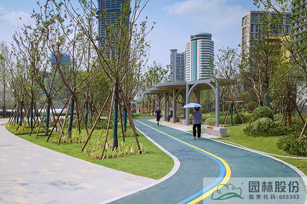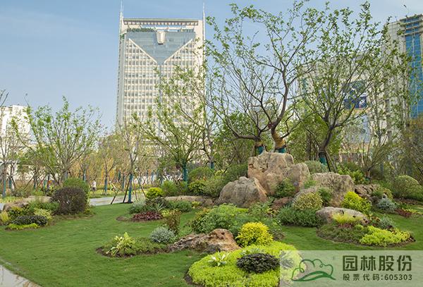 項(xiàng)目注重新優(yōu)植物的應(yīng)用,行道樹采用娜塔莉、中心廣場(chǎng)通道兩側(cè)綠地種植美國紅楓、中心廣場(chǎng)內(nèi)種植銀杏樹等色葉樹種。翠綠的枝葉相互掩映,樹下設(shè)有林蔭座凳,夏季可有“大樹成蔭”之景,市民可觀賞可乘涼,充分感受自然野趣。主道路行道樹為染井吉野等開花與色葉樹種,周邊綠地采用混合花境置石結(jié)合的配置手法,時(shí)花、低矮花灌木與景石自然搭配,并大量應(yīng)用了公司自主研發(fā)的繡球新品種,營造景觀豐富的長(zhǎng)效花境景觀。