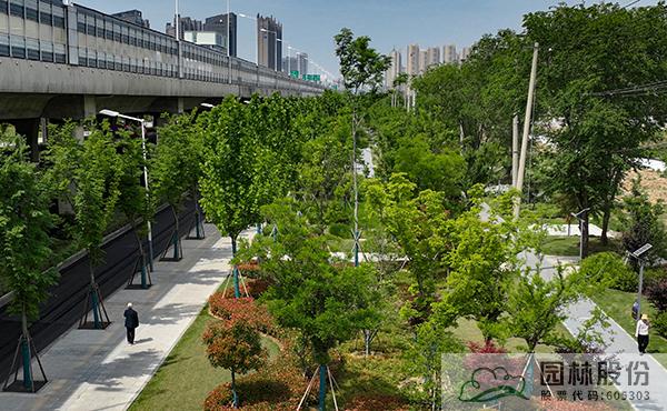 本項(xiàng)目全線綠道貫通,與周邊地塊無(wú)縫銜接,并根據(jù)局部特點(diǎn)因地制宜地變化綠道穿行,其中恢復(fù)綠地以臨人行道式、綠地穿行式、借用人行道式,新建綠地以綠道穿行式為主。遮蔭樹(shù)林以散植、片植等形式結(jié)合綠道布置,注重林下空間營(yíng)造,切實(shí)做到景觀以人為本,為民服務(wù)。